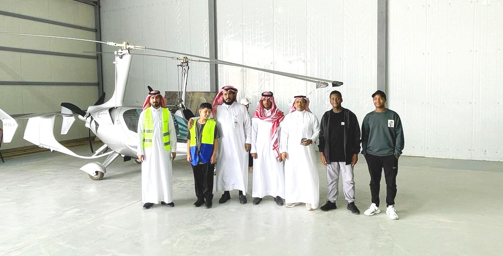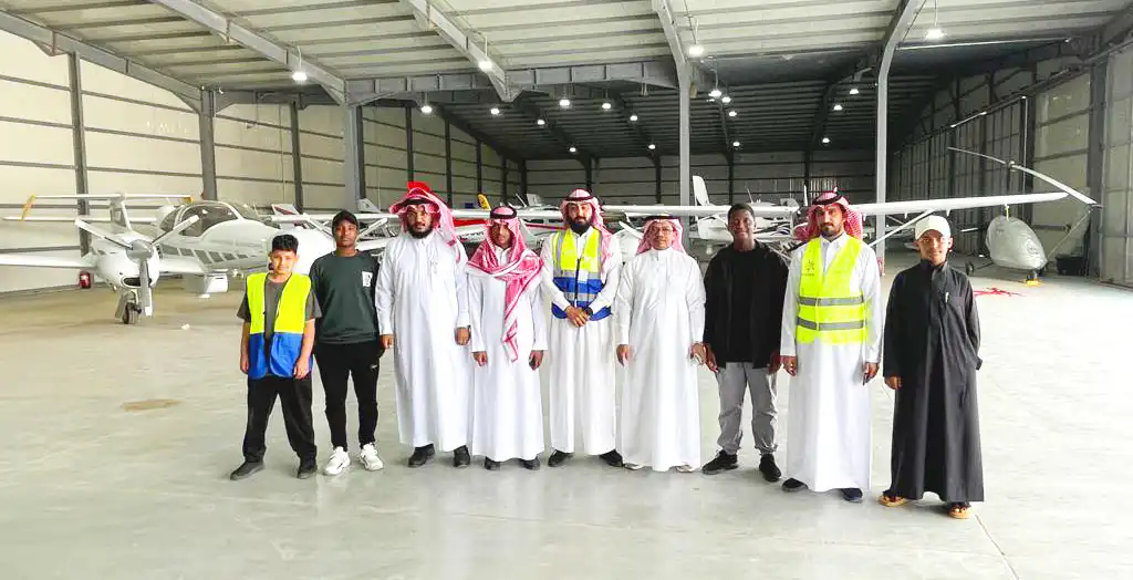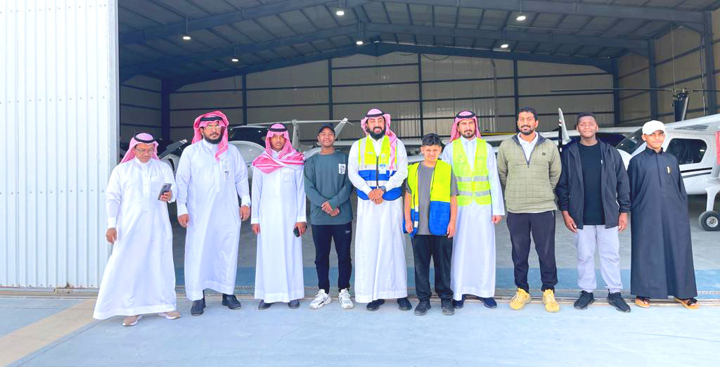 حيث تم تقديم جولة تعريفية لمطار الثمامة وزيارة حظائر الطائرات والاطلاع على مختلف أنواع الطائرات مع تقديم الشرح والتصوير داخل الطائرة.