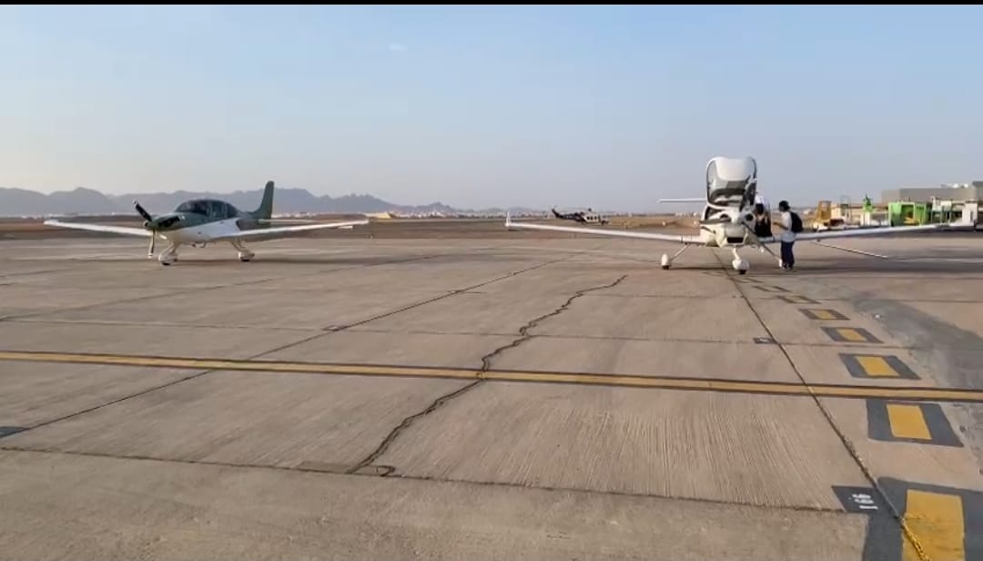 The participating aircrafts are of various types, including general and sports, took off from Al-Thumama Airport to Hail International Airport, as these flights aim to spread the culture of aviation and its sciences by meeting visitors, introducing aircraft and their types, explaining the training flight programs provided by the club, and transferring expertise.