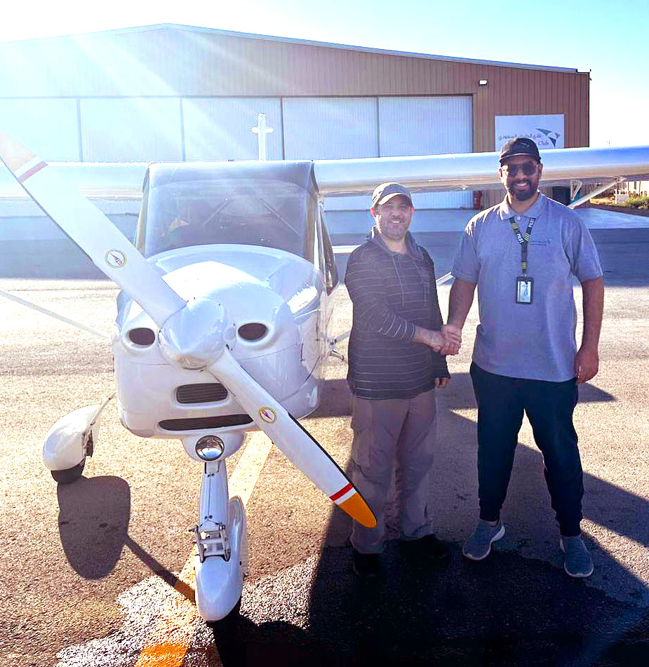 The members of the Saudi Aviation Club Atallah Al-Anzi and Sultan Al-Muhaimid successfully completed the solo flight as part of the training program requirements to obtain a private pilot license (PPL), Under the supervision and training of