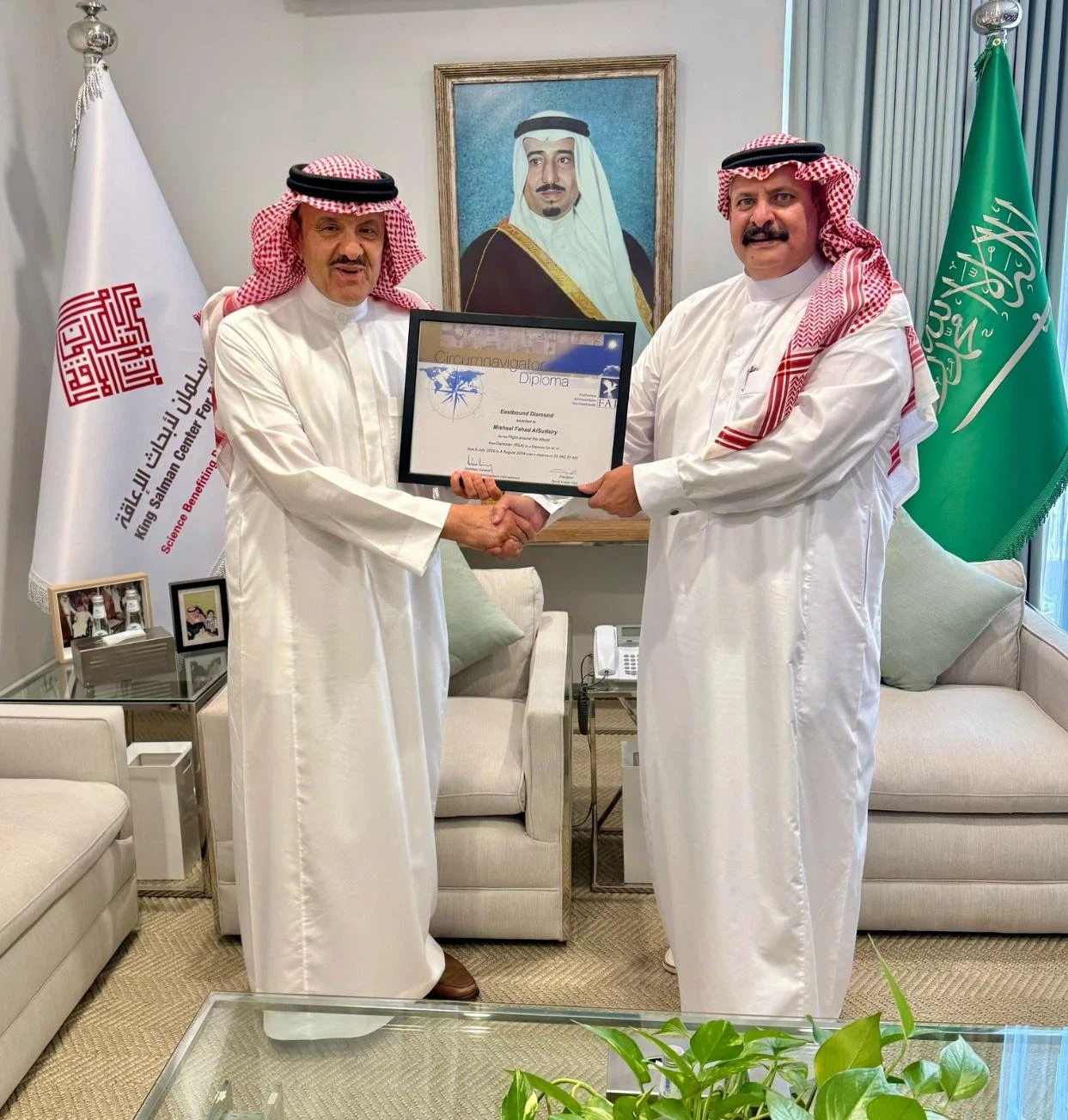 His Royal Highness Prince Sultan bin Salman bin Abdulaziz, Founder and Chairman of the Saudi Aviation Club and Special Advisor to the Custodian of the Two Holy Mosques, received today in Riyadh Captain Pilot Mishaal bin Fahad Al-Sudairy, who was awarded the Certificate of Achievement by the Fédération Aéronautique Internationale (FAI) for completing a solo round-the-world flight that lasted 27 days.