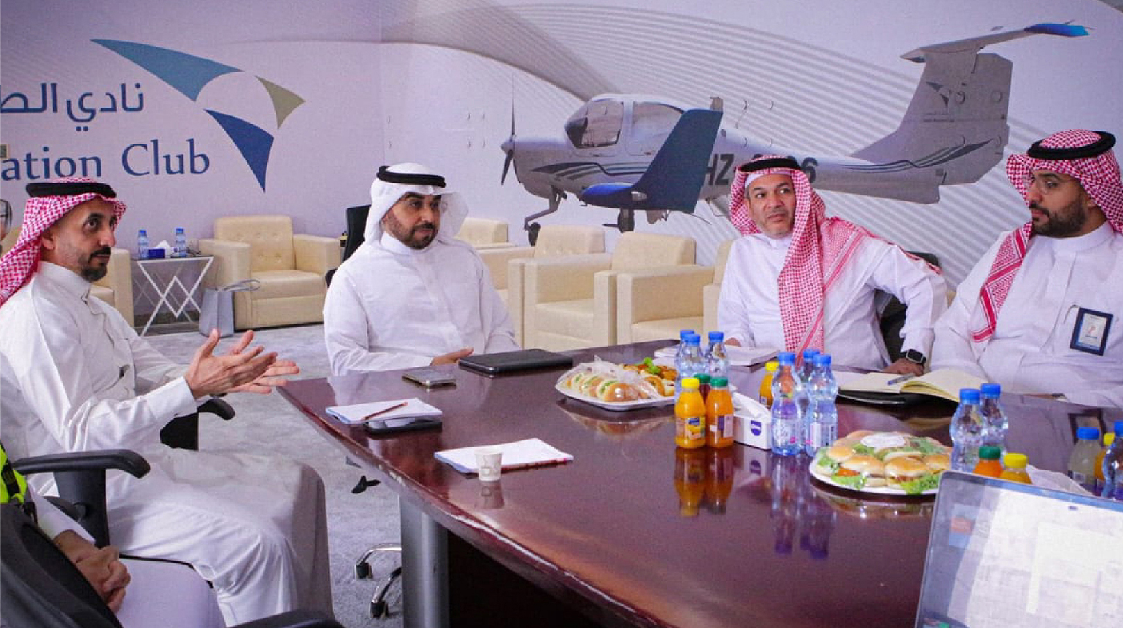 The meeting was attended by Captain Farres Muneer, Captain Ayad Al-Mahbash, and Captain Rahaf Al-Judaie from the Saudi Aviation Club.